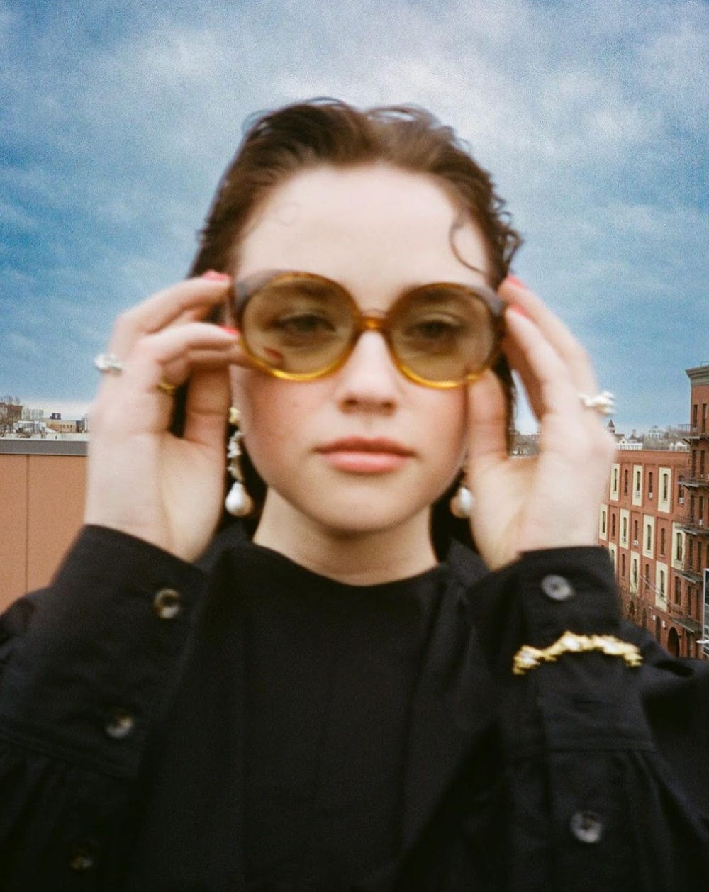 RYZA: I got the idea in November when I was living upstate, working on this film, and I began calling opticians, asking who would change lenses for me. When I got back to New York a month later, I remodeled three glasses, and I did a test shoot with my friend Taj, who's a photographer, and my other friend, Eloise, you, [laughing]. I put them on Vestiaire Collective and a month later, one of them sold. That's when I was like, okay, it's a business. I'm going to go for it. That was in January, 2022.